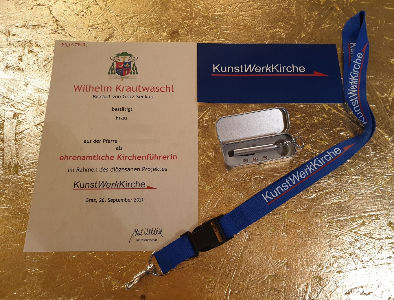 Nach der Teilnahme an allen drei Modulen mit konkreten Kirchenführungen sowie dem Verfassen einer kleinen Kirchenführerarbeit, bekommen die Absolventinnen und Absolventen ihr KunstWerkKirche-Dekret verliehen. Die Überreichung erfolgt in einem festlichen Rahmen, zu dem Familienangehörige, Freunde und Pfarrvertreter eingeladen sind.