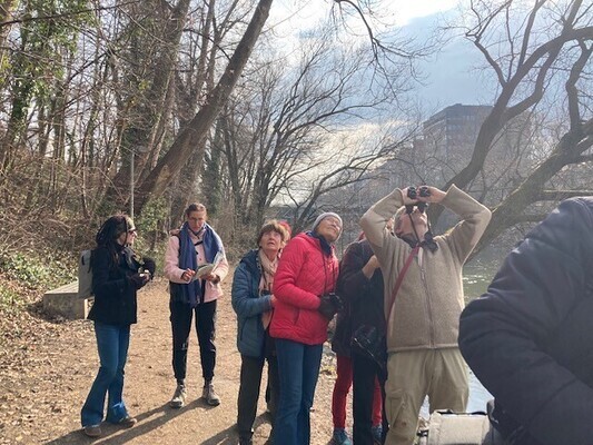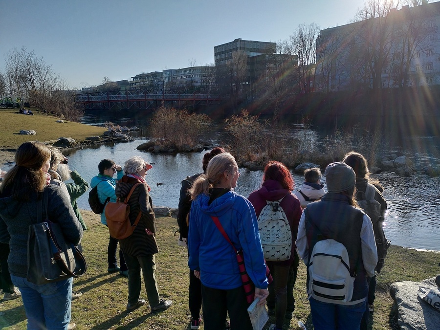 Am 16. Februar 2024 führte die versierte Biologin Maga Roya Payandeh 18 Teilnehmende im Rahmen von ,Schöpfung Erleben‘ wieder auf eine inspirierende Vogelwanderung entlang der Mur Richtung Süden zum Augarten. Im und über dem Wasser tummelten sich Gänsesäger, Mittelmeermöwen und Gebirgsstelzen.