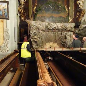 Aufbau der Krippe in der Pfarrkirche am 20. Dezember 2017