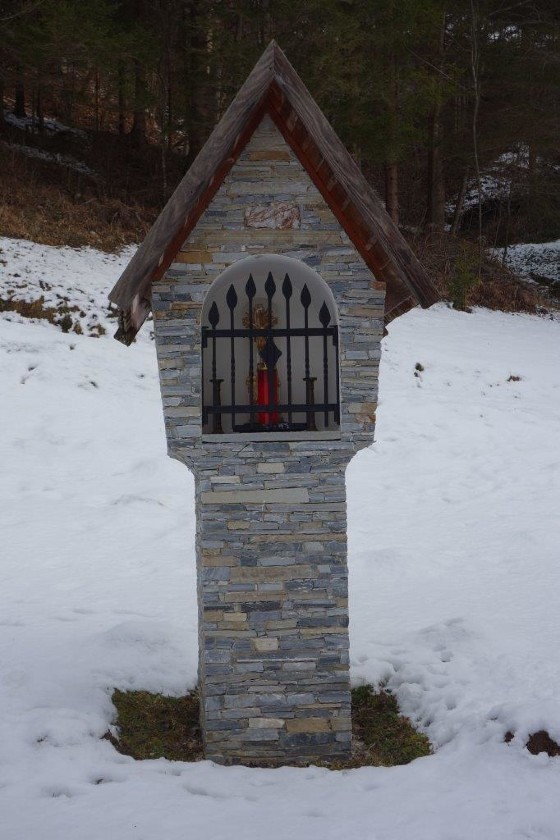 Dieses schöne Zeichen des Glaubens steht auf dem Grundstück einer Zuhube in der Schrems. Nach einer schweren Erkrankung gelobte der Besitzer Norbert Haidinger vulgo Salitrer, nach seiner Genesung im Jahre 2000 dort einen Bildstock zu errichten.