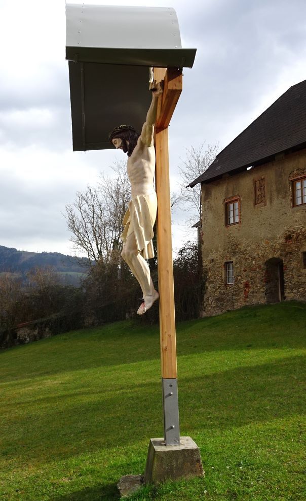Aufgestellt wurde das wunderschön restaurierte Kreuz Anfang Oktober 2023 von Lukas Fassl, Clemens Zöhrer und Gerhard Baumegger, wo es am Kirchweihsonntag (15. Oktober) feierlich von Pfarrer Ruthofer gesegnet wurde.